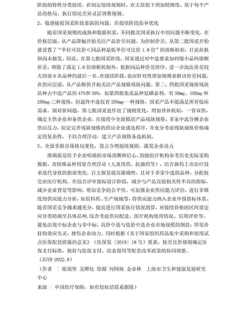 國家藥品集中帶量采購常態(tài)化下接續(xù)探索與啟示