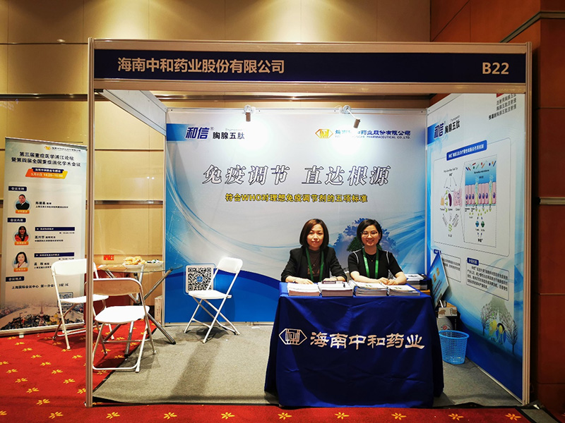 會(huì)議期間海南中和藥業(yè)也設(shè)置了展臺(tái),眾多參會(huì)專家前來(lái)展臺(tái)咨詢和溝通交流,此次會(huì)議是和信?胸腺五肽在全國(guó)大型學(xué)術(shù)會(huì)議上的一次隆重亮相,樹(shù)立并加強(qiáng)了和信?胸腺五肽在重癥感染領(lǐng)域的專業(yè)化品牌形象。海南中和藥業(yè)也一直致力于全國(guó)學(xué)術(shù)專業(yè)平臺(tái)的搭建,在今后的學(xué)術(shù)交流中,我們會(huì)持續(xù)將臨床先進(jìn)的診療觀念和經(jīng)驗(yàn)分享給廣大臨床醫(yī)生,使更多臨床患者獲益。
