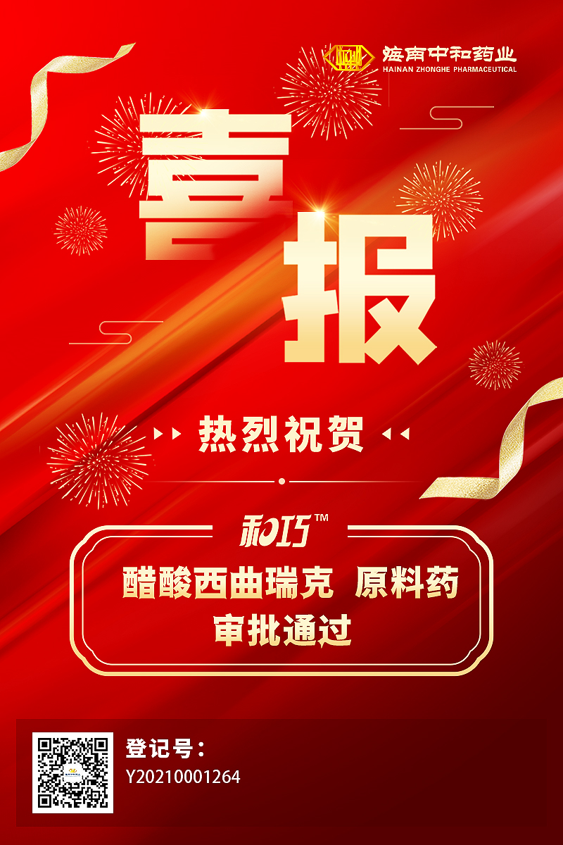 熱烈祝賀我司醋酸西曲瑞克原料藥審批通過及注射用醋酸西曲瑞克獲批上市