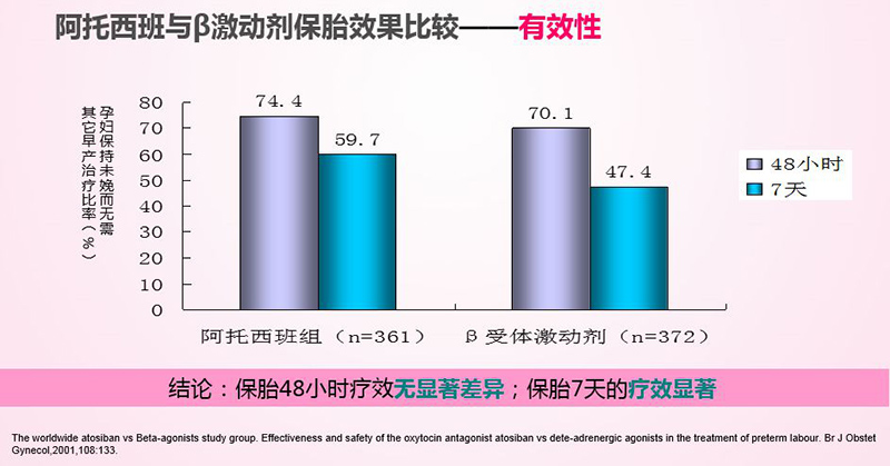 3.阿托西班不良反應(yīng)發(fā)生率低于β激動(dòng)劑,阿托西班具有更高的母胎安全性。