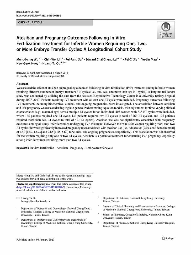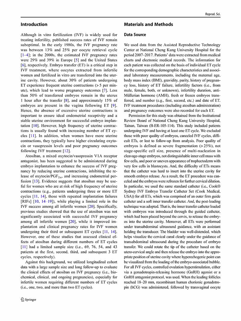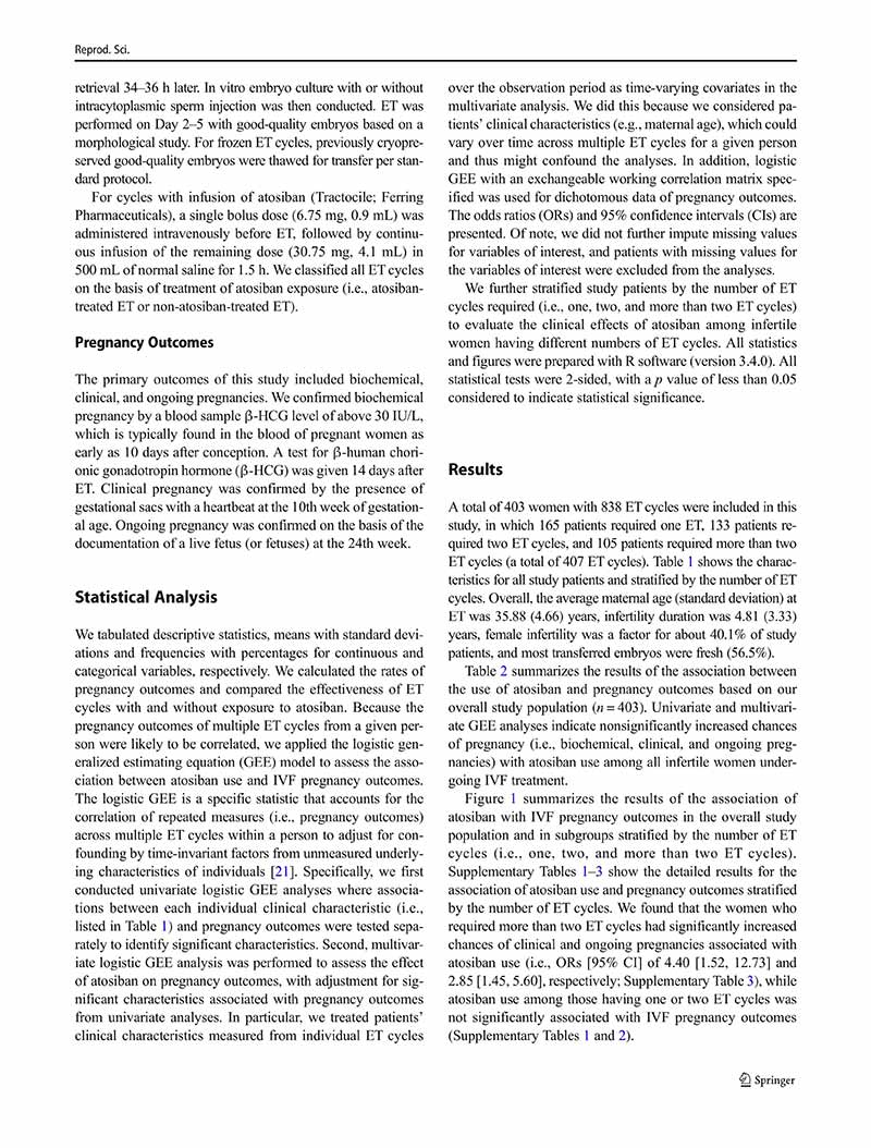 結(jié)論:注射阿托西班是一種潛在的提高體外受精妊娠率的治療方法,特別是在需要兩個以上胚胎移植周期的不孕婦女中。