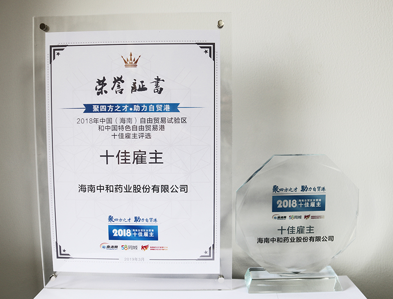 (中和藥業(yè)榮獲2018年海南自貿(mào)(區(qū))港十佳雇主稱號)
