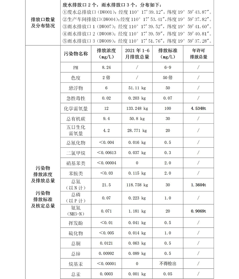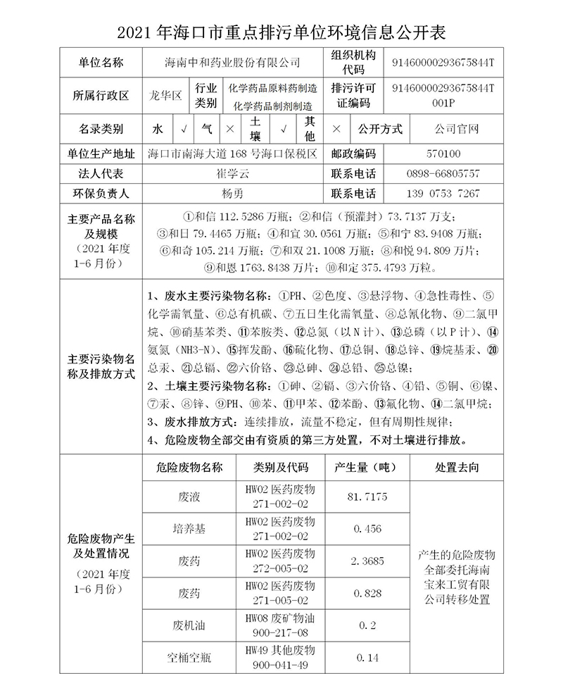 海南中和藥業(yè)--2021年海口市重點排污單位環(huán)境信息公開表