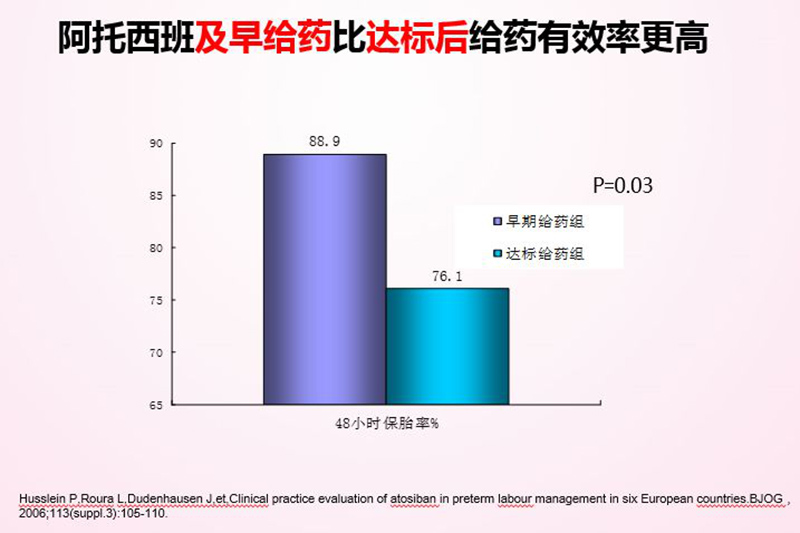 阿托西班及早給藥比達(dá)標(biāo)后給藥更有效,阿托西班是先進(jìn)的宮縮抑制劑,被認(rèn)為是首選的早產(chǎn)治療藥物。